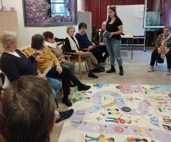 Por último, la trabajadora social de Dfa se encargó de dinamizar una partida del juego Ciudades accesibles, que forma parte del proyecto 'Somos diversidad'. Aunque está enfocado a alumnado de primaria, el tablero en forma de lona, el dado y las fichas gigantes sirvieron a estas personas para abordar el ámbito de la discapacidad y la accesibilidad desde un prisma diferente.