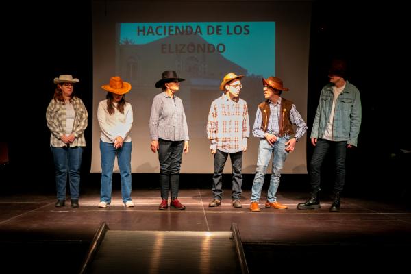 Una pequeña cuota de protagonismo recayó en los cuatro jóvenes del Cuerpo Europeo de Solidaridad, gestionado y financiado por la Comisión Europea, que durante un año participan y colaboran en las actividades diarias de Fundación Dfa. Caracterizados para la ocasión, dieron vida a una adolescente rebelde, a una inocente romántica, a un rico personaje y a un elegante francés que al que el castellano se le resiste.