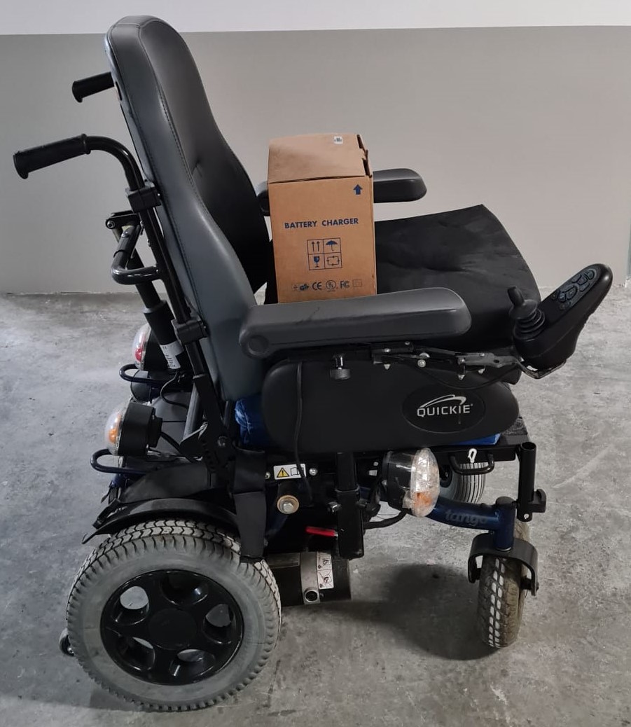 Vendo silla de ruedas eléctrica Quickie Tango. Soporta una carga de 125 kg, con cinturón de seguridad, luces e indicadores, respaldo reclinable, seis niveles de velocidad, batería nueva, reposapiés y reposabrazos cambiados en enero.