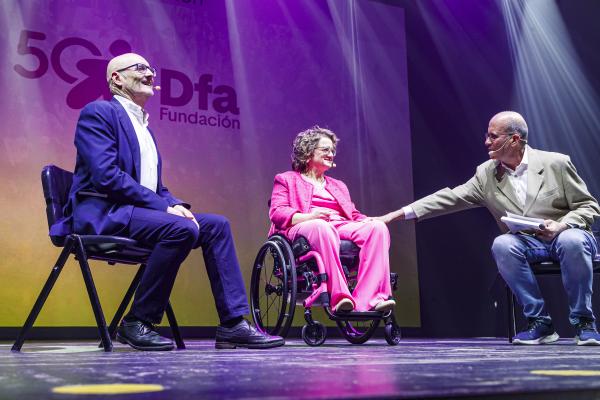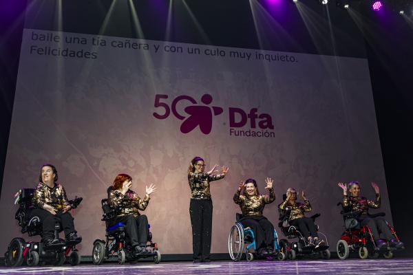 La gala incluyó momentos artísticos que han puesto el acento en el talento sin barreras, con la actuación del coro Cantatutti, y la danza inclusiva del grupo ‘Orgullo Disca’, que dirige Marina Joven junto a Virginia Bernabéu. Bajo el lema «el baile es un derecho de todas las personas», su coreografía, construida en torno al pasado, presente y futuro de Dfa, ha culminado con una canción que reivindica la autoestima y la diversidad. Un broche perfecto para celebrar una trayectoria construida de forma colectiva durante cinco décadas.