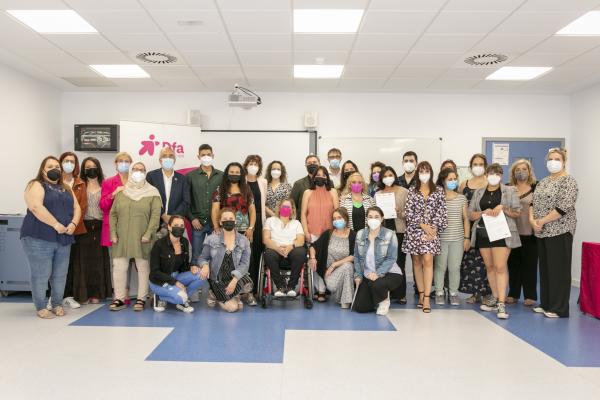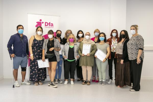 Con la entrega de los certificados de profesionalidad se clausuraron este lunes los Talleres de Empleo DFASISTE II y FIIS T-Cuida, impulsados por Fundación Dfa y FIIS (Fundación Instituto para la Integración Social) en las especialidades de ‘Atención Sociosanitaria a Personas Dependientes en Instituciones Sociales’ y ‘Atención Sociosanitaria a Personas en el Domicilio’.