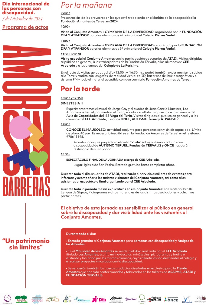 Esta quinta edición de la jornada 'Amor sin barreras, un patrimonio sin límites', pretende que todas las personas, con independencia de la discapacidad que tengan, disfruten de los bienes culturales, además de dar a conocer a las asociaciones que trabajan por la Discapacidad en Teruel.