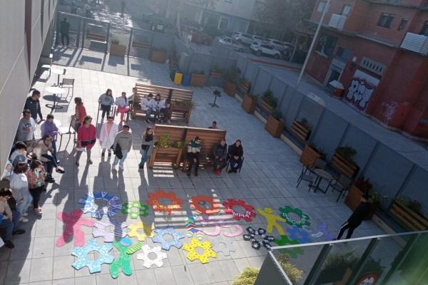 Otra visita, pero al edificio Josemi Monserrate, fue la que realizaron varios educadores de La Calle Indiscreta para hablar del medio ambiente urbano en un aula viajera con el alumnado de Fundación Dfa.