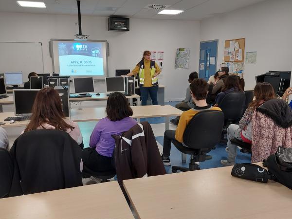 El alumnado de los Programas de Programas de Cualificación Inicial de Formación Profesional (PCI) ha participado en la mañana de este viernes un taller sobre ciberseguridad. Hasta una de las aulas del edificio Josemi Monserrate se ha desplazado una agente de Participación Ciudadana de la Policía Nacional con el objetivo de concienciar y sensibilizar sobre los riesgos de internet.