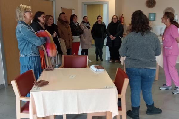 La visita también incluyó el paso por una sala de reminiscencia, con mobiliario y utensilios de la década de los años 60 y 70, donde trabajan la memoria y los recuerdos. Fue interesante para el alumnado del taller conocer un centro con una tipología de usuarios muy diferente a las personas con discapacidad con las que se han relacionado en su trabajo.