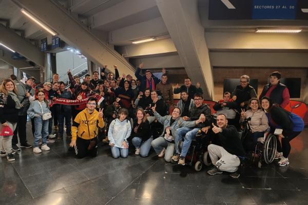 El partido de baloncesto entre el Casademont Zaragoza masculino y el Gran Canaria contó con un grupo de aficionados de excepción. A la marea roja habitual del pabellón Príncipe Felipe se sumaron el pasado sábado 40 personas del Centro de Actividades Socioculturales de Fundación Dfa.