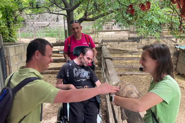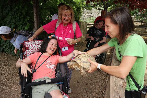 La expedición se dirigió en autobús hasta Barbastro para visitar el Zoológico Iris. A través de una visita guiada pudieron descubrir e interactuar con diferentes las especies animales que alberga este núcleo ubicado en la capital del Somontano. Búhos, tortugas, burros, ovejas, cabras, tejones, emus, monos, etc… La biodiversidad de este pequeño rincón provocó atrajo la atención y el cariño de un grupo poco acostumbrado a tener contacto con esta singular fauna.