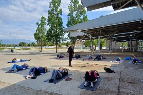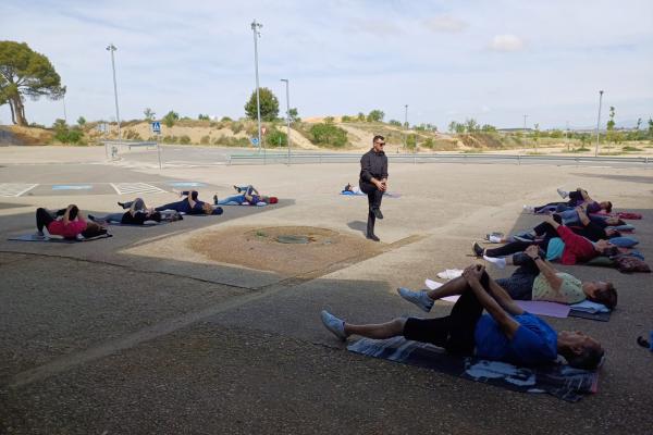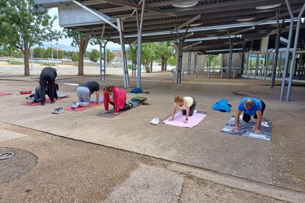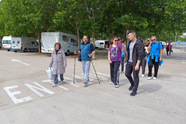 Más allá de los beneficios propios de salir a caminar también hubo tiempo para una sesión de estiramientos y ejercicios con el fin de mejorar la flexibilidad y reducir la rigidez del cuerpo. Esta parte de la actividad matinal tuvo lugar en el entorno del Palacio de los Deportes bajo la supervisión de Miguel Luna, fisioterapeuta de la entidad en Huesca.