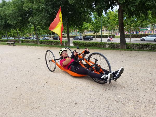 El deporte ocupa parte del tiempo libre de Sergio Pamplona. Acostado en su llamativa ‘handbike’ naranja, devora kilómetros cuando su agenda lo permite. «Ahora, por diferentes circunstancias, salgo a rodar solo los fines de semana; pero si hay alguna carrera y el viaje me encaja, no dudo en participar», explica este zaragozano de 31 años, uno de los tres aragoneses que compiten en esta modalidad.
