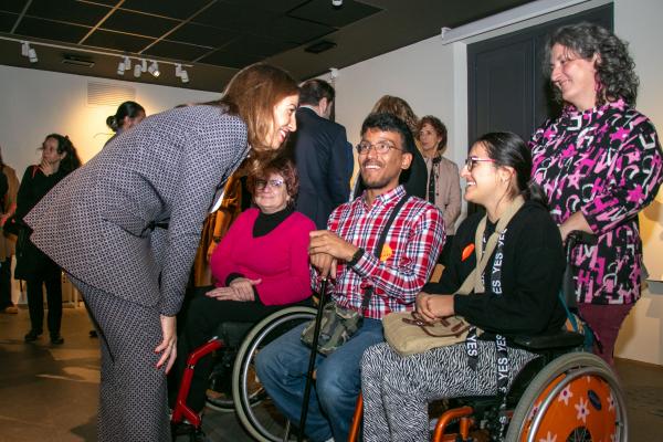 En la sala 'Entre luces' estuvieron presentes, además de la presidenta Marta Valencia, dos alumnos de la Formación Inicial para Personas Adultas (FIPA), que imparte Dfa en el edificio Josemi Monserrate. Hace unos meses que Daniel y Carmen visitaron el espacio junto al resto del alumnado con el fin de ofrecer su visión sobre aspectos a mejorar desde el punto de vista de la discapacidad. Este miércoles regresaron para ser partícipes de la inauguración. «Han hecho caso a algunas de nuestras recomendaciones y la sala ha quedado muy chula», comentaba Carmen, satisfecha al ver cómo, por ejemplo, la altura de las obras se ha adaptado a las personas en silla de ruedas.