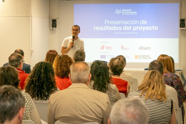 Este viernes se han presentado en el Laboratorio de Aragón Gobierno Abierto (LAAAB) los resultados hasta la fecha del proyecto piloto 'Apoyos Conectados para la Autonomía Personal' (ACAP), desarrollado por Fundación Dfa, ATAM y FIIS, con el respaldo del Gobierno de Aragón y financiación del Plan de Recuperación, Transformación y Resiliencia del Gobierno de España.