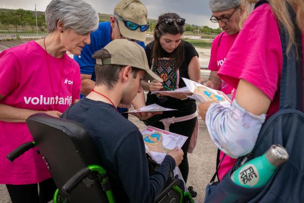 El Centro de Actividades Socioculturales de Fundación Dfa participó en una jornada deportiva de introducción al deporte de orientación por senderos, también denominado Trail-o. Una pequeña representación del voluntariado y varias personas usuarias se aproximaron por espacio de dos horas a esta modalidad que pretende ser inclusiva. La cita tuvo lugar en el Parque Libro de la Selva, en el barrio de Valdespartera.