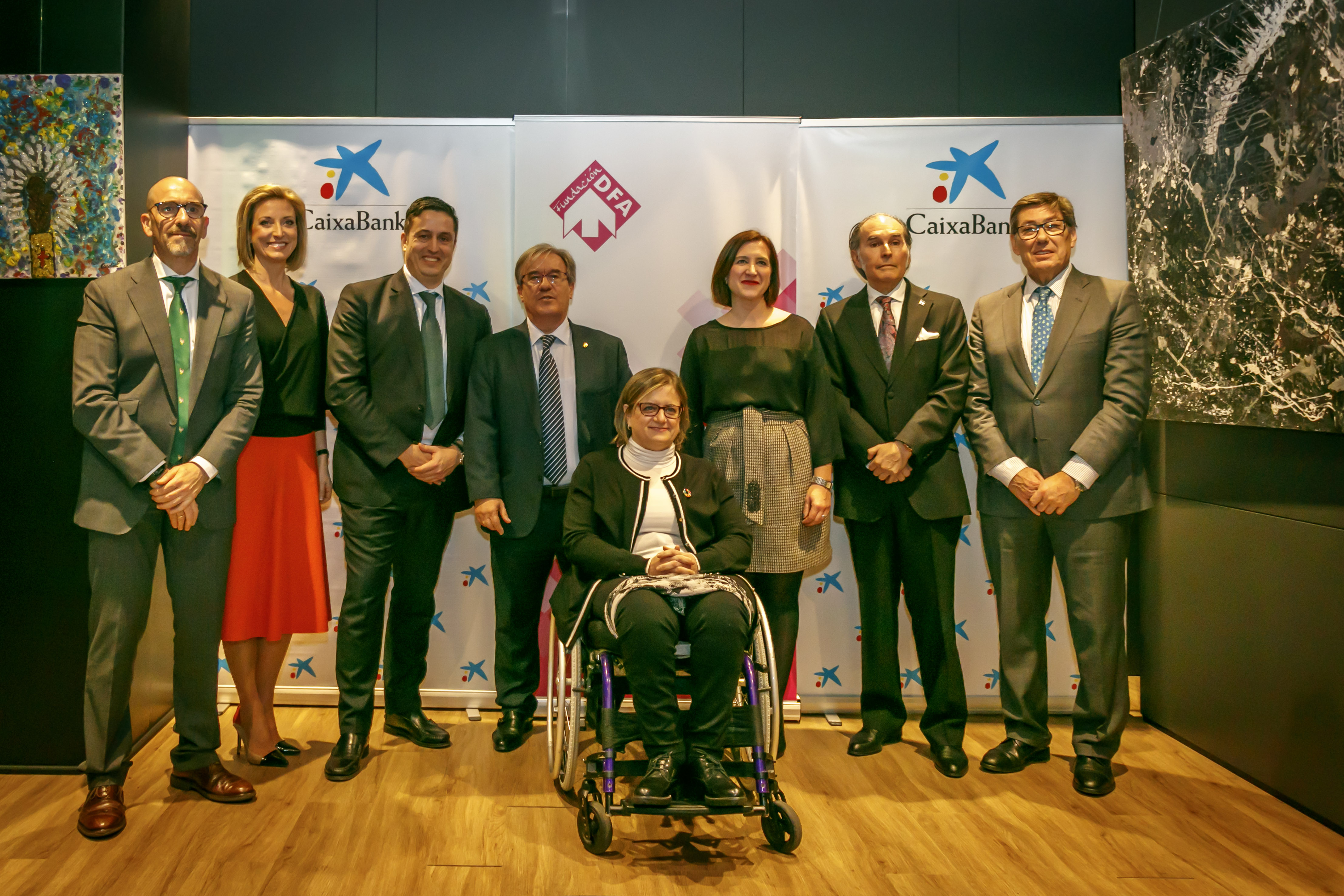 La oficina Store CaixaBank Plaza Aragón acogió la exposición del pintor José Manuel Cardiel. CaixaBank, a través de Obra Social “la Caixa”, hizo entrega en este acto de 12.000€ a Fundación DFA para el proyecto de Atención Postemprana.