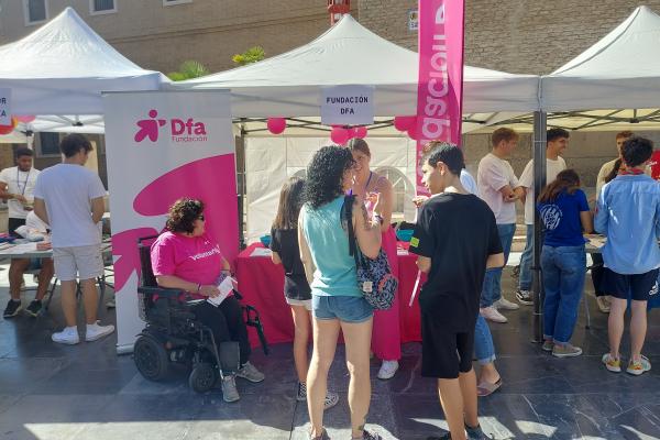 El stand informativo de Fundación Dfa ofreció material para acercarse a los jóvenes y proporcionarles información acerca de las distintas labores y actividades que lleva a cabo la fundación. En particular, el equipo del Centro de Actividades Socioculturales destacó el proyecto de voluntariado de la fundación, así como todos los programas y actividades disponibles para la participación de esta parte de la sociedad.