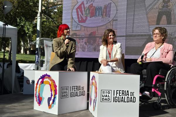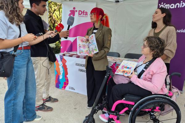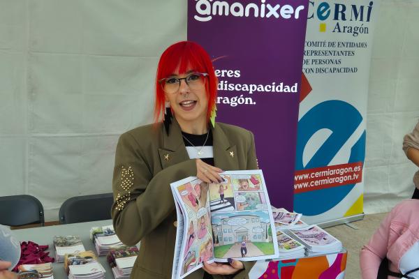 Por el escenario instalado para la ocasión pasó Sara Jotabé. La ilustradora aragonesa presentó el cómic 'Mujer y discapacidad', creado junto a Amanixer a través de un proyecto con el Servicio de Igualdad del Ayuntamiento de Zaragoza. La acompañaron la jefa del propio servicio, Ana Gaspar, y Marta Valencia, como presidenta de Fundación Dfa y de Amanixer. La publicación presenta historias reales y la vida cotidiana de las mujeres con discapacidad a través de viñetas y tiras de cómic tratadas con humor.