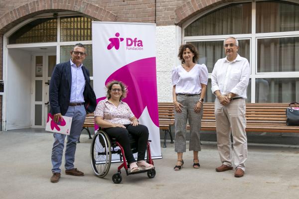 La directora gerente del Inaem, Elena Guinda, y el jefe del servicio de Promoción de Empleo del organismo público, Recaredo García, visitaron este miércoles las instalaciones de Fundación Dfa. Ambos representantes aprovecharon el encuentro para mantener una reunión de trabajo en la sede de la entidad con Marta Valencia y Luis Molina, presidenta y director general de Dfa, respectivamente.