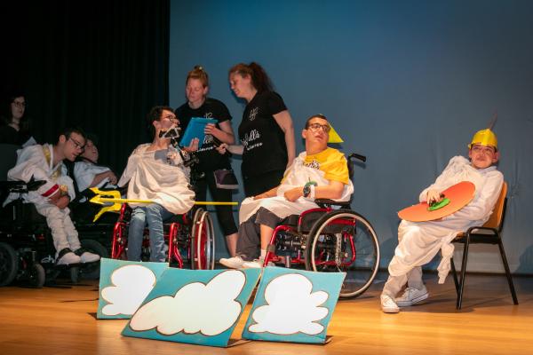 En la función participó una veintena de excelentes actores y actrices, quienes, con el apoyo de las educadoras del centro de día, se desprendieron de la vergüenza y disfrutaron sobre el escenario. «Esta obra es una forma de potenciar la autodeterminación que pretendemos potenciar en estos chicos y chicas a lo largo de todo el año», comentó Ana López, una de las educadoras.