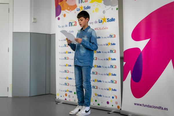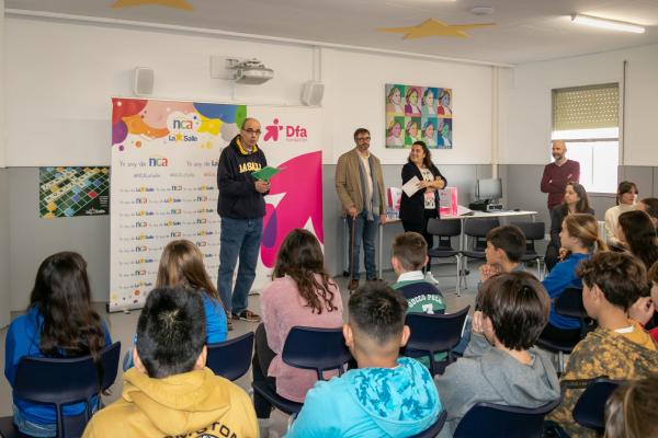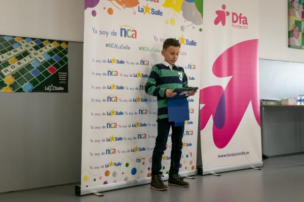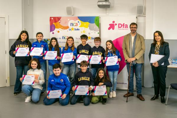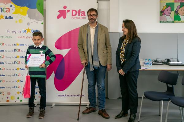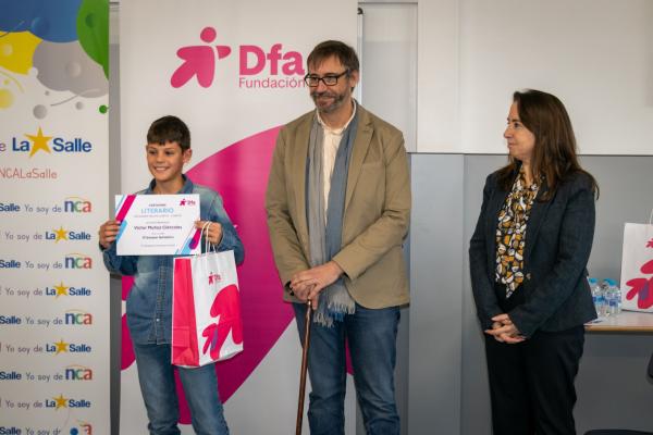 Fundación Dfa entregó este viernes en el Colegio La Salle de Teruel los premios a los ganadores en la categoría Relato Corto o Cuento del XXX Certamen Literario. Los alumnos Víctor Muñoz, por su obra ‘El bosque fantástico’, y Eduardo Muñoz, por ‘Una mañana bastante movida’, recibieron un lote de libros juveniles en reconocimiento a las dos mejores propuestas presentadas en esta edición. No pudo estar presente en el acto celebrado en la biblioteca de La Salle Nour Alhoda, autora de ‘Lola y Adrián salvan al bosque’ y alumna del CEIP Vicente Ferrer Ramón de Valderrobres.