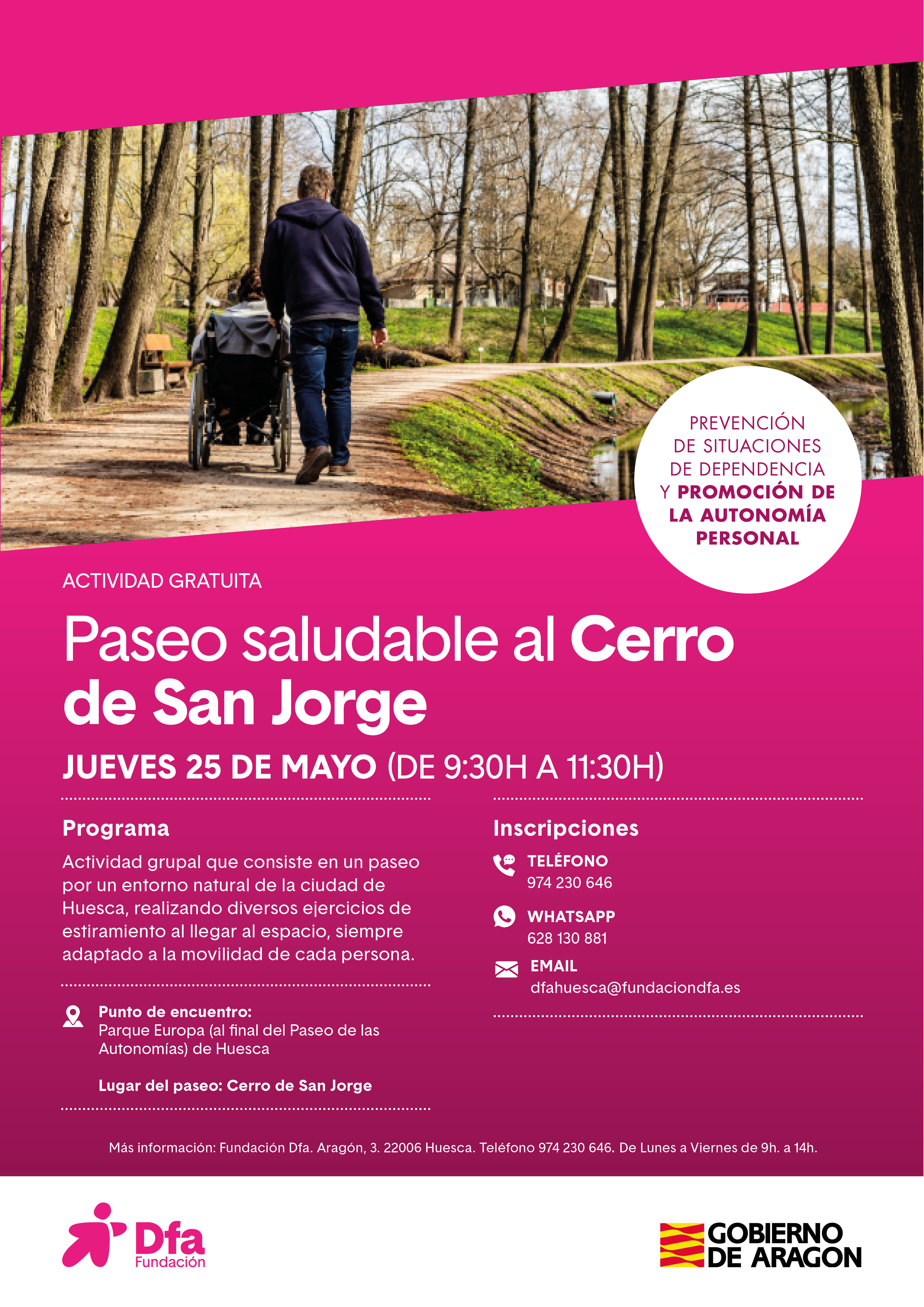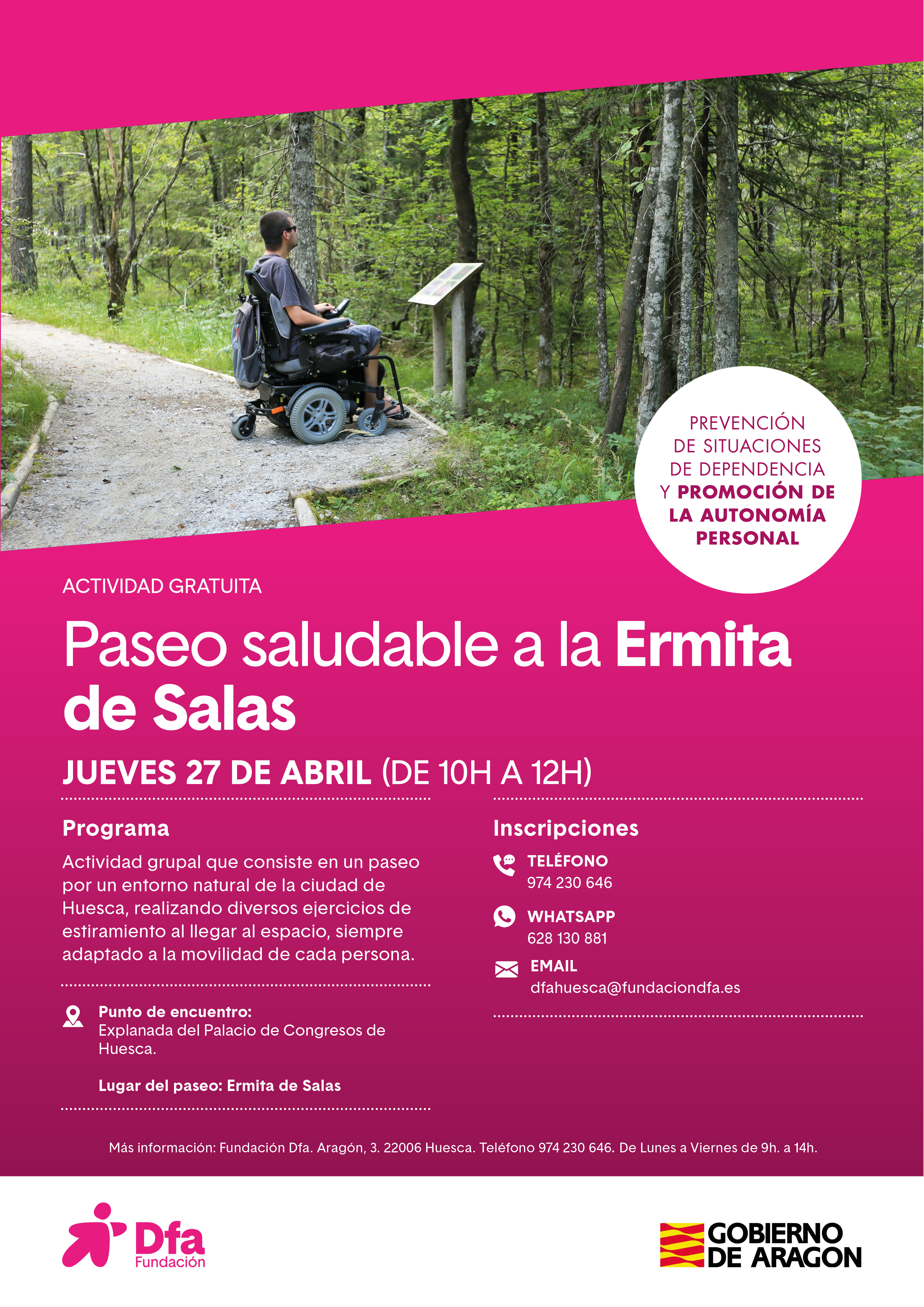 Fundación Dfa pone en marcha en Huesca una iniciativa cuyo objetivo es promover los hábitos saludables, fomentando la actividad física y el cuidado de la salud. Con el fin de aumentar el bienestar de las personas con discapacidad, ha organizado tres paseos por entornos naturales de la capital oscense.