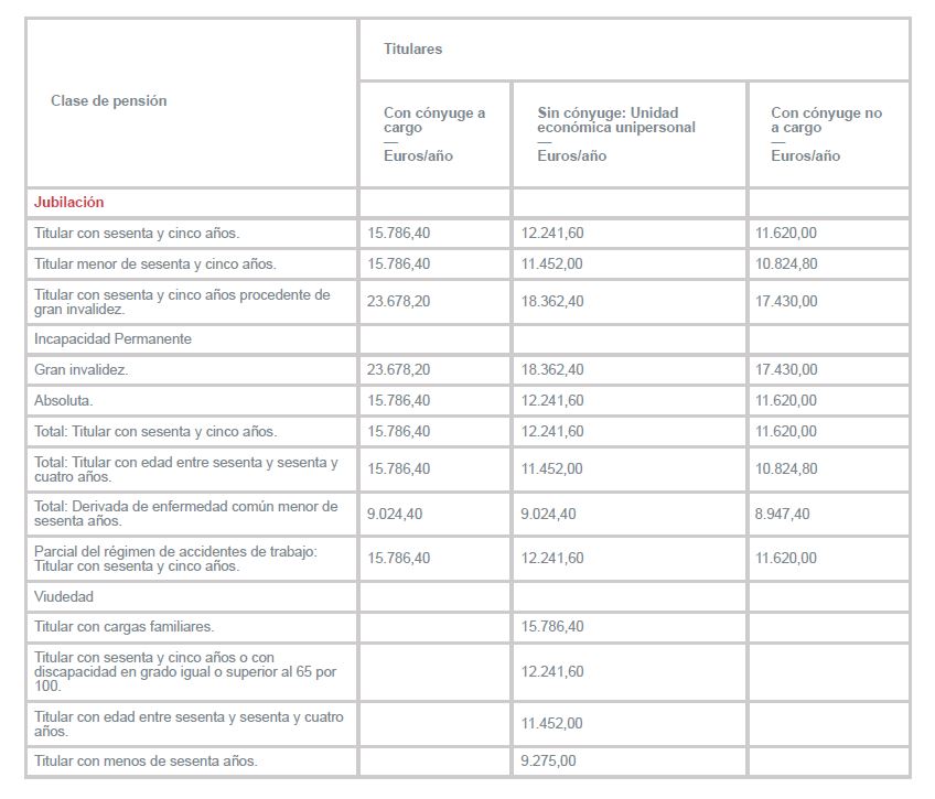 - Cuantías mínimas de pensiones contributivas con complementos: