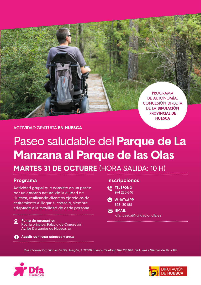 Fundación Dfa y Amanixer retoman en Huesca la organización de los paseos saludables, una iniciativa gratuita cuyo objetivo es fomentar la actividad física y el ejercicio de personas con y sin discapacidad.