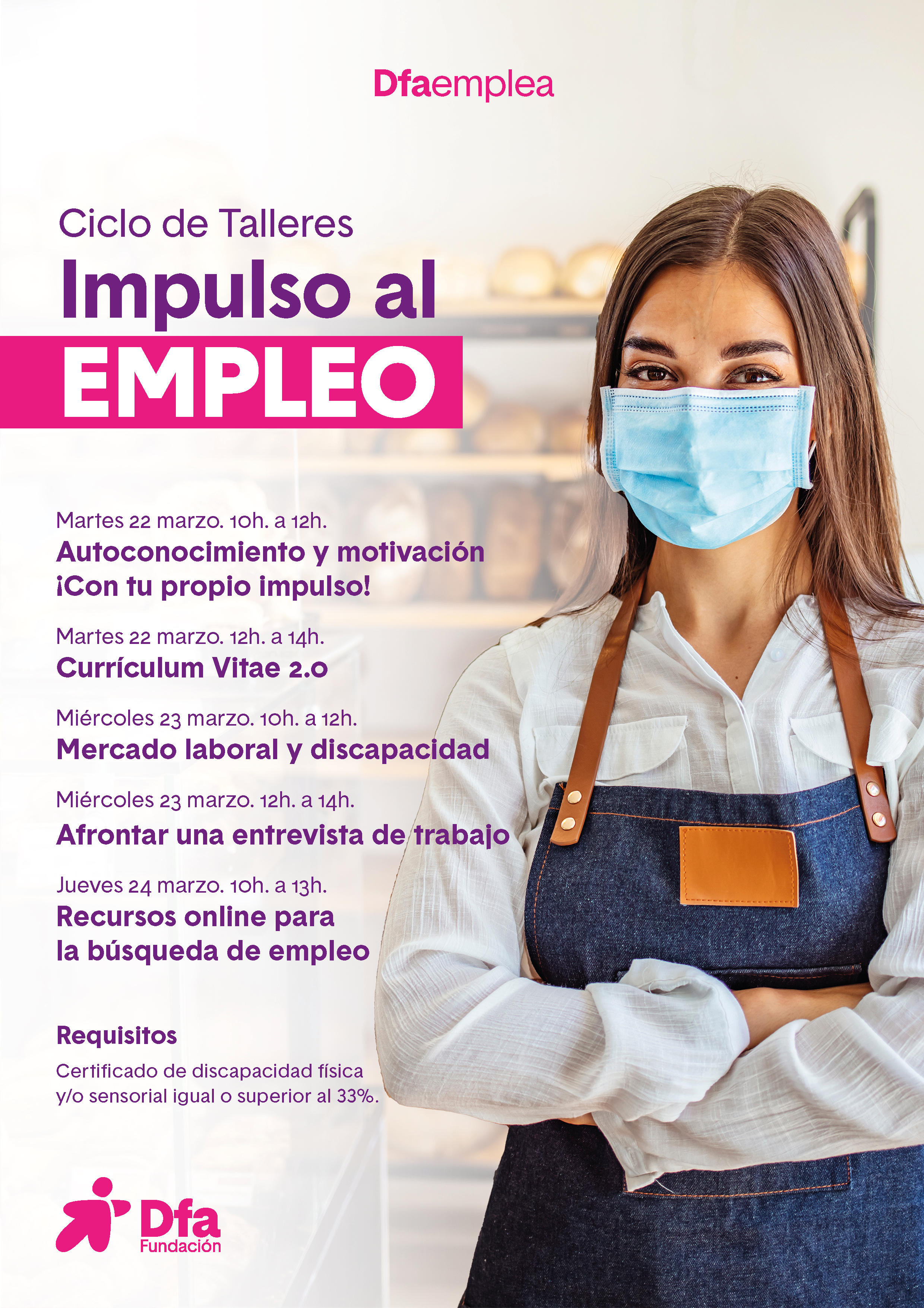 Con el objetivo de fomentar la empleabilidad y la búsqueda de empleo de las personas con discapacidad, Dfaemplea, agencia de colocación de Fundación Dfa, realizará un ciclo de cinco talleres en torno a habilidades prelaborales, brindando una serie de claves y estrategias para presentar un buen currículum, afrontar entrevistas de trabajo y utilizar herramienta de búsqueda activa de empleo.