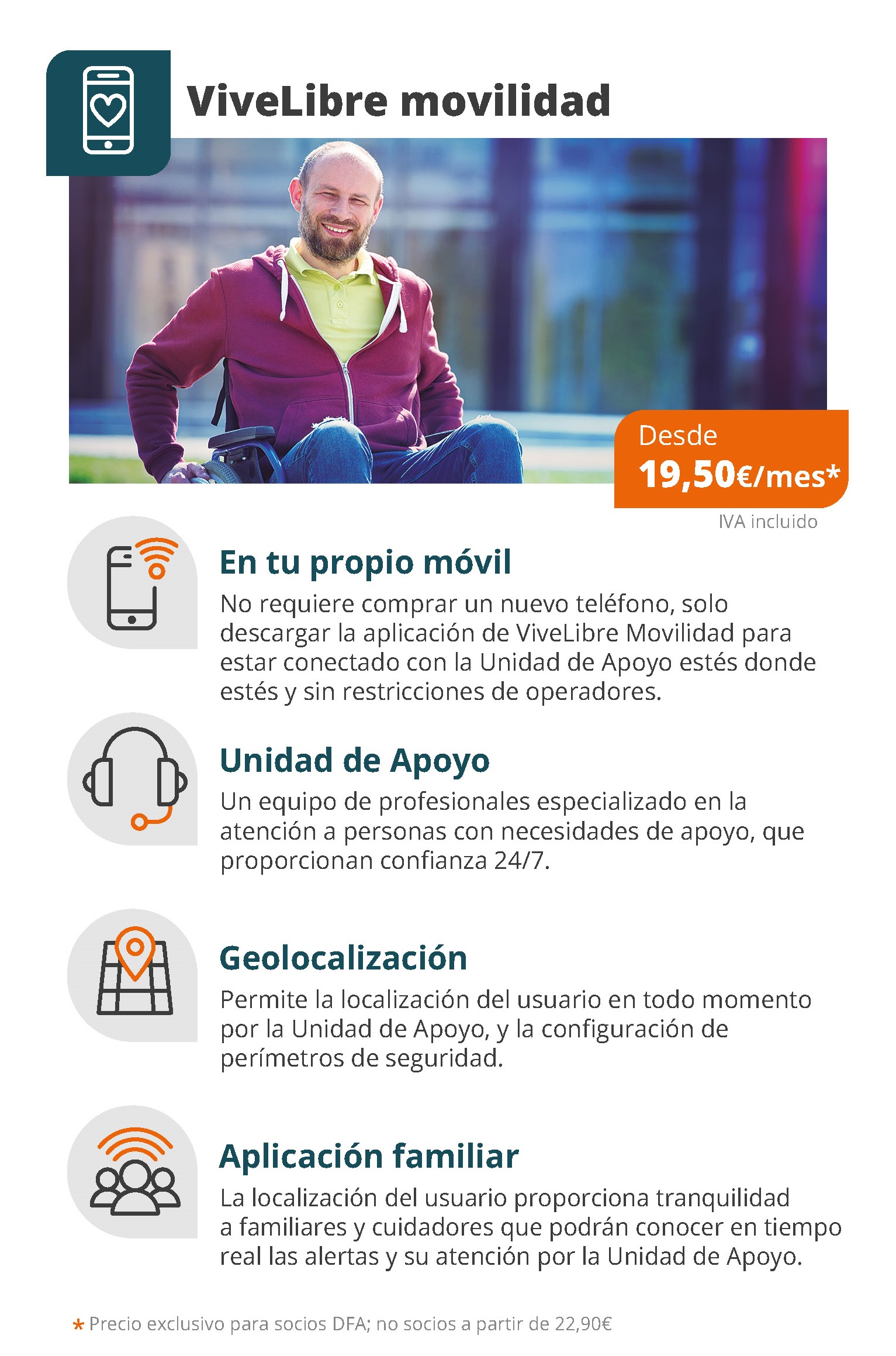 A través de la aplicación móvil de ViveLibre, la atención profesional inmediata va contigo estés donde estés, ofreciendo al usuario mayor seguridad y autonomía, y a su familia la tranquilidad de saber que siempre contará con ayuda experta a un solo clic.
